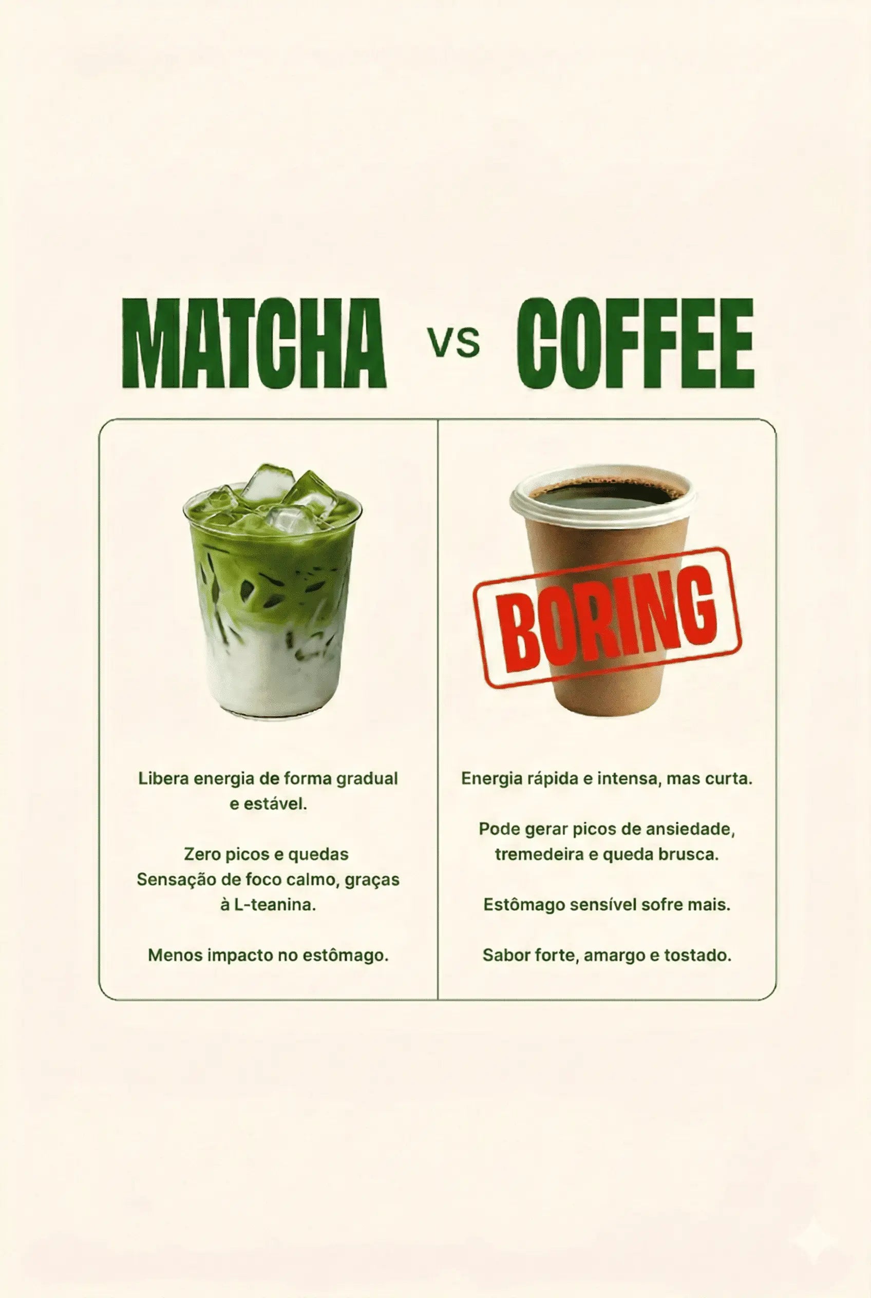 Concentração em alta sem aquela ansiedade. O matcha ajuda a manter a mente clara e produtiva.